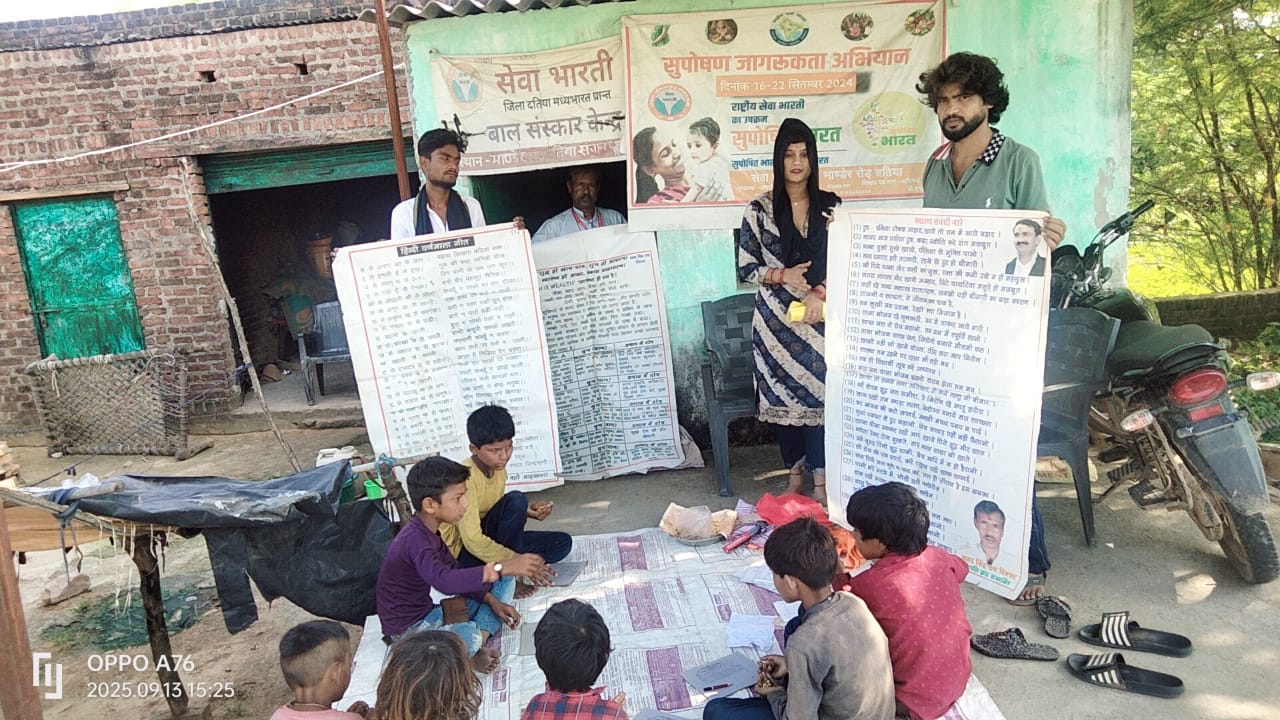 सुपोषित भारत समर्थ भारत के तहतसेवा भारती केंद्र भाण्डेर रोड पर बच्चों को बांटा गया गुड़ चना